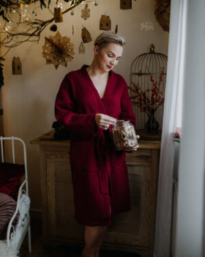 LET’S SPA Bawełniany Szlafrok kimono- Wine Lady