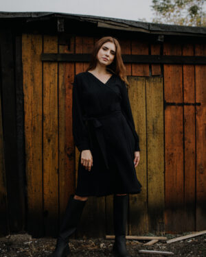TARA mini- Bawełniana sukienka z mankietami -Onyx Lady