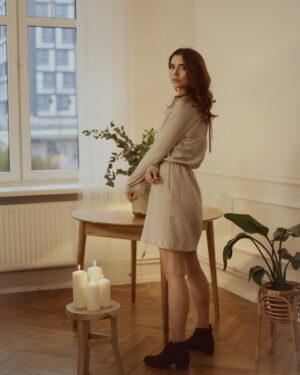BASANTI Muślinowa sukienka mini – Beige Lady