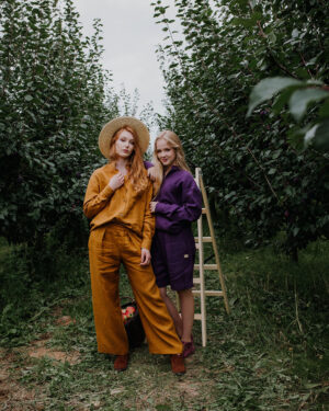 SHILA Lniany Zestaw- Koszula & długie spodnie -Cinnamone