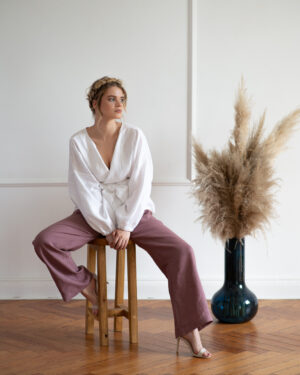 SHILA Długie, lniane spodnie – Marsala Rose