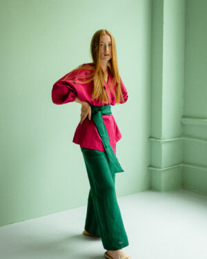 SHILA Lniane Spodnie -Emerald
