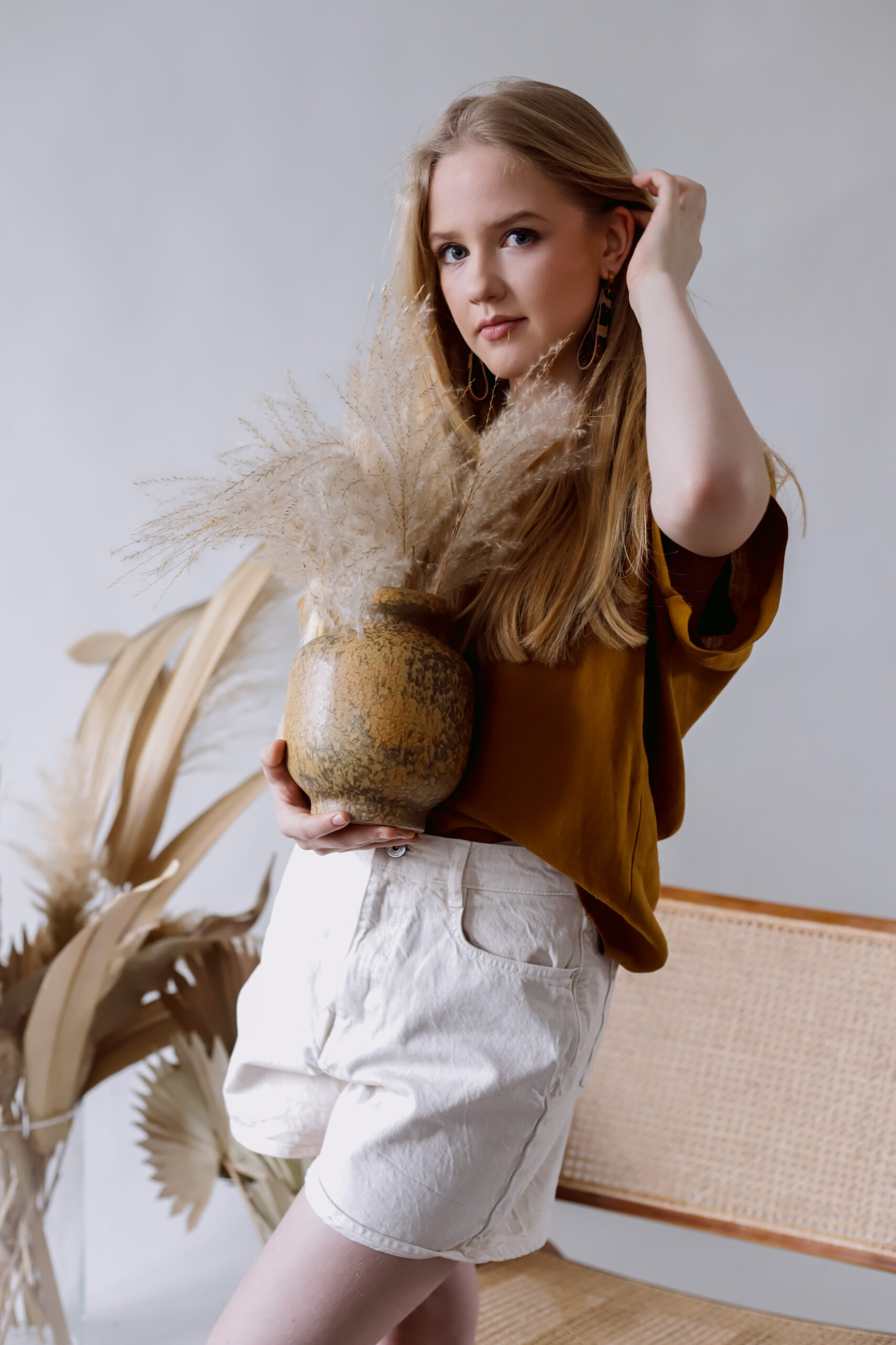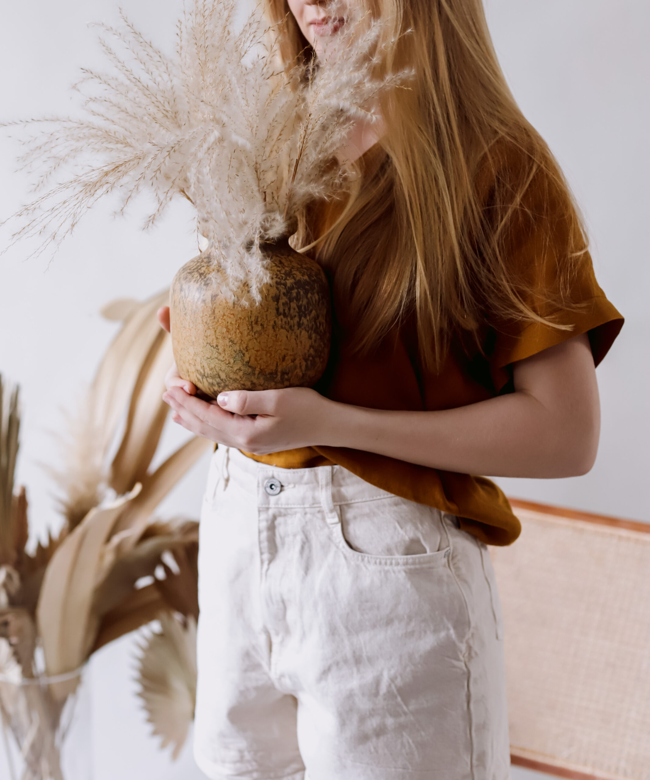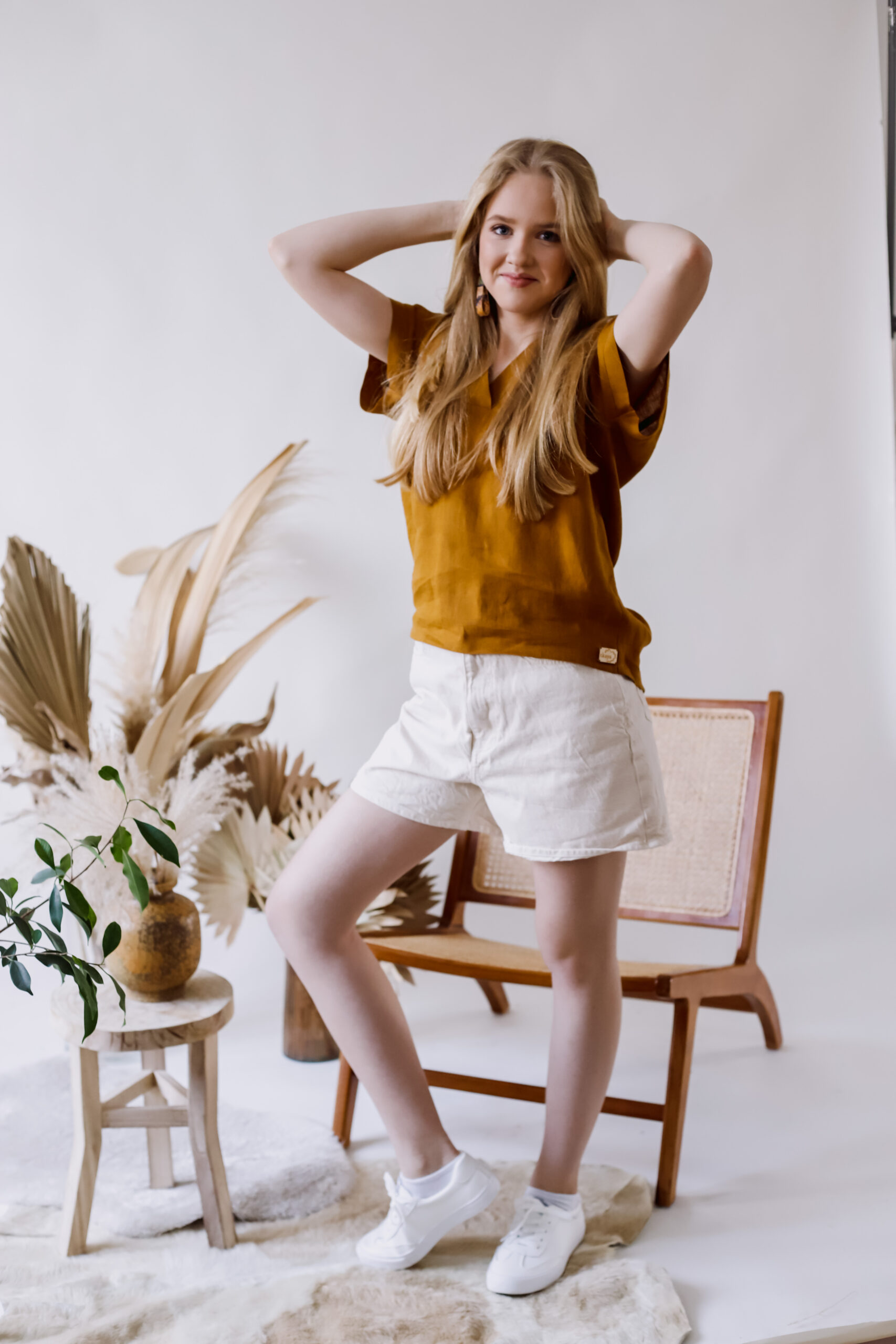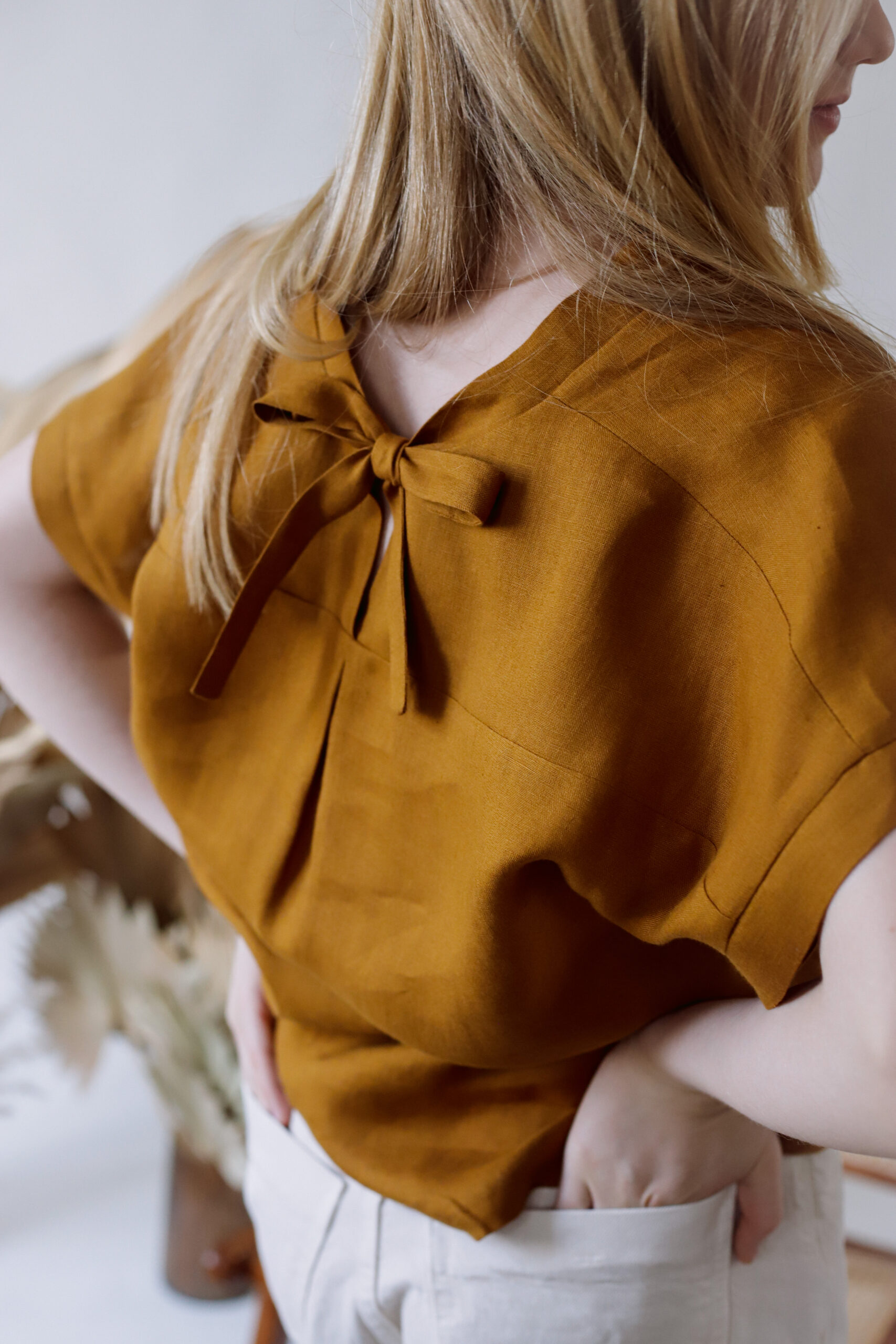 CLEO Lniana bluzka z wiązaniem na plecach- Cinamonne Lady