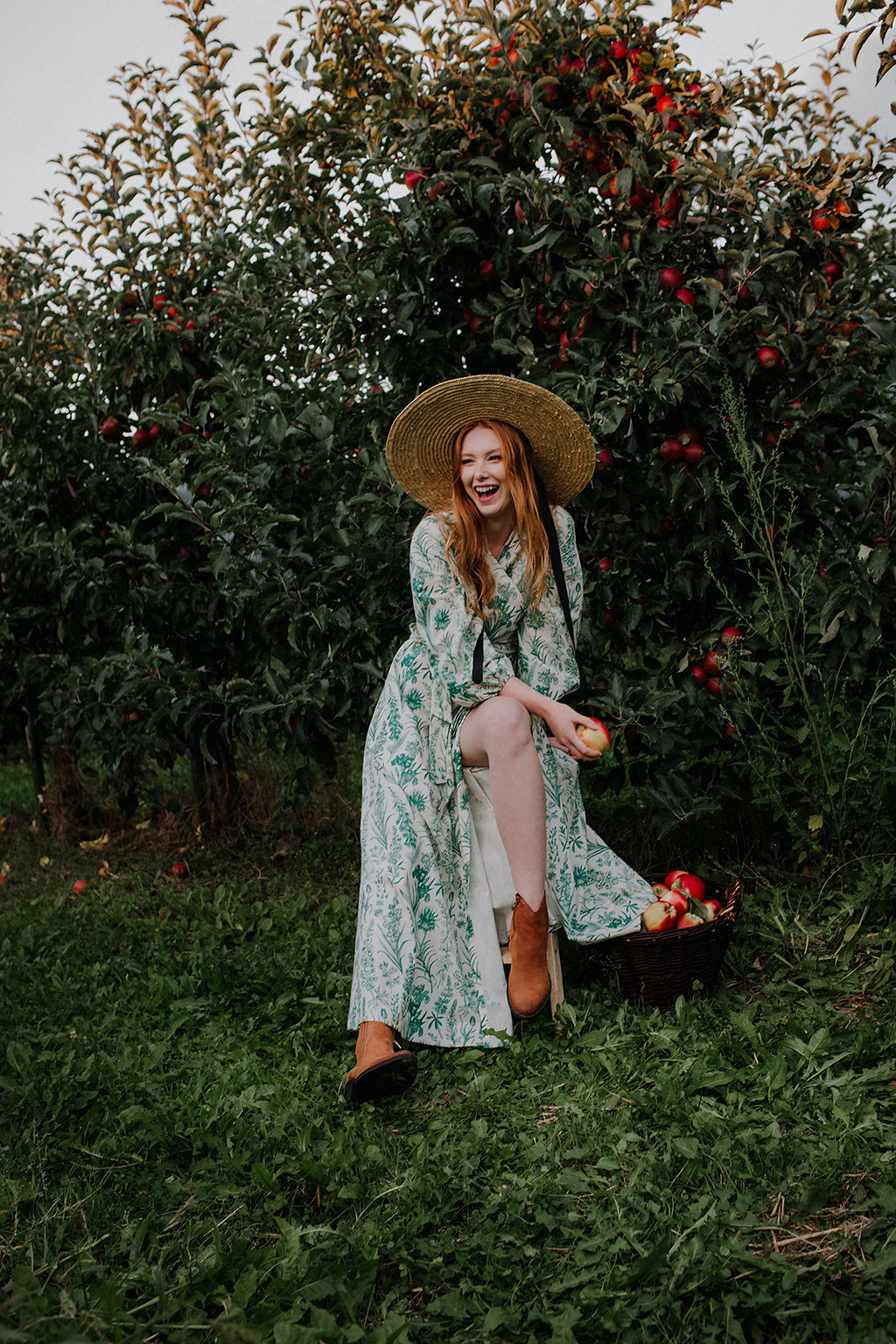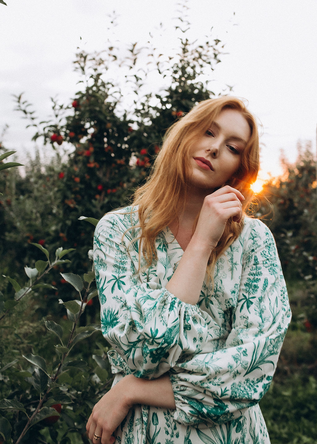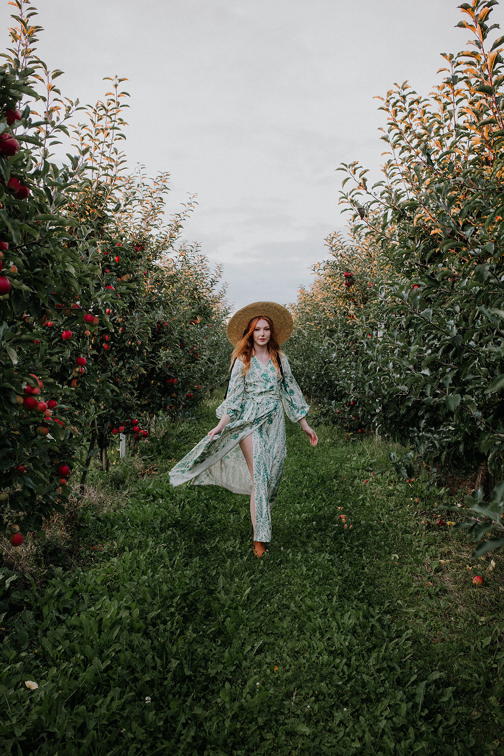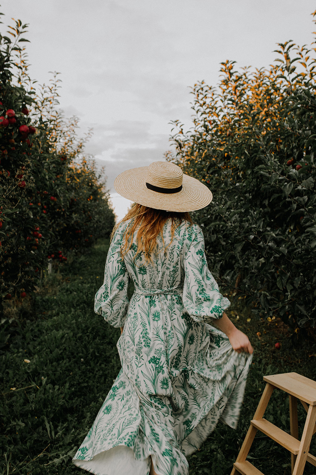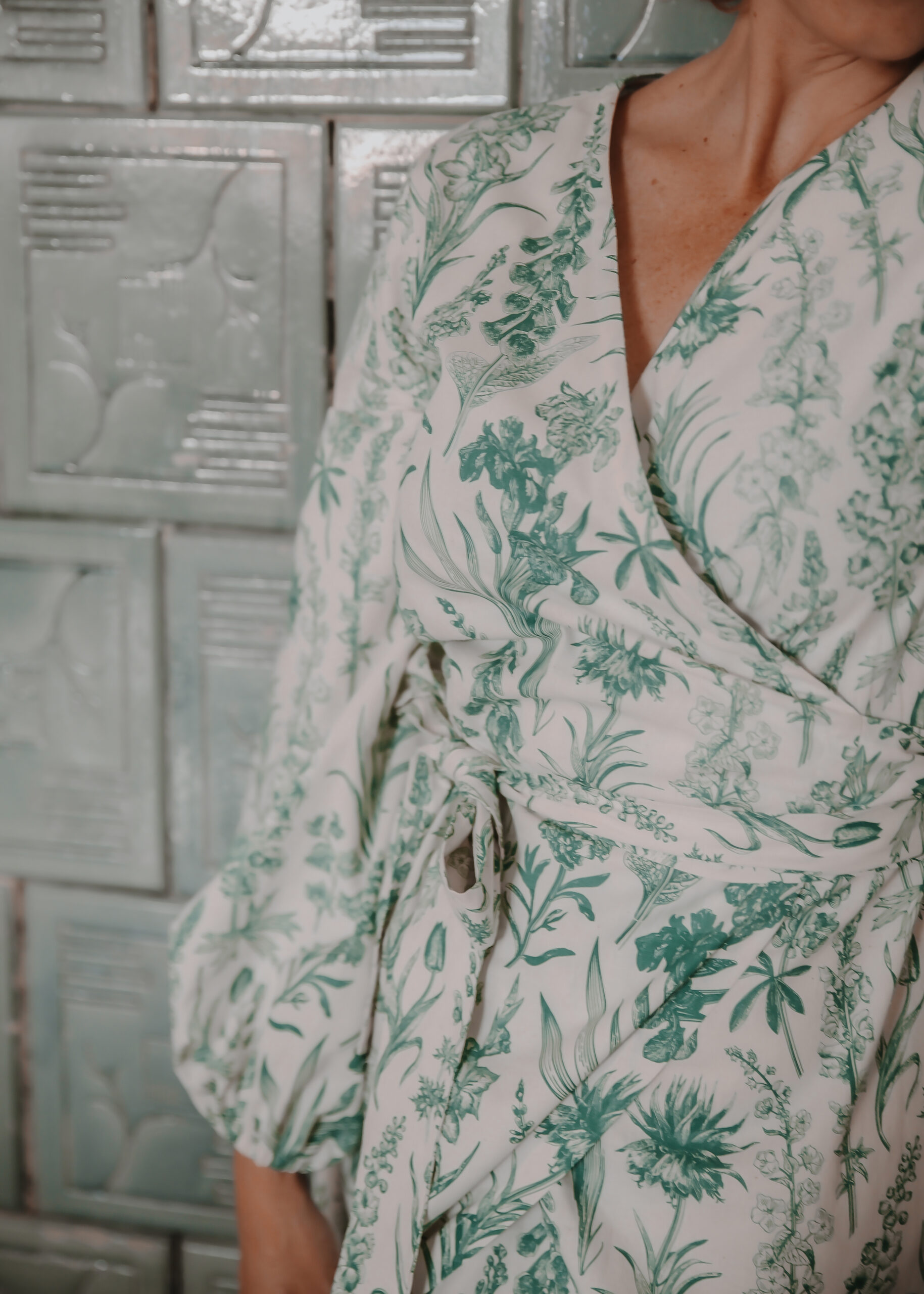 GAURI Plants Lady – to bawełniana sukienka maxi z cudownym printem roślinnym w kolorze butelkowej zieleni.
