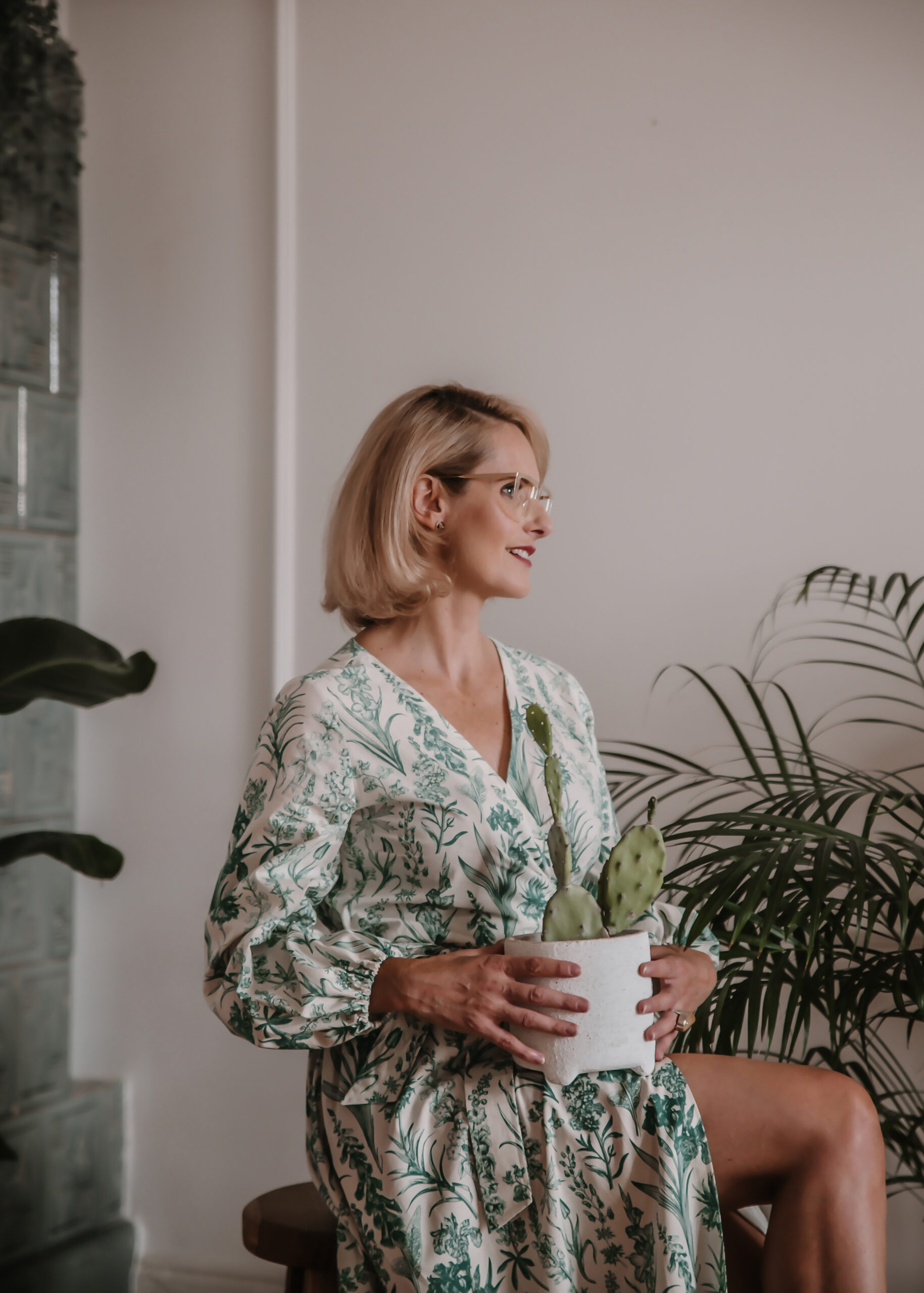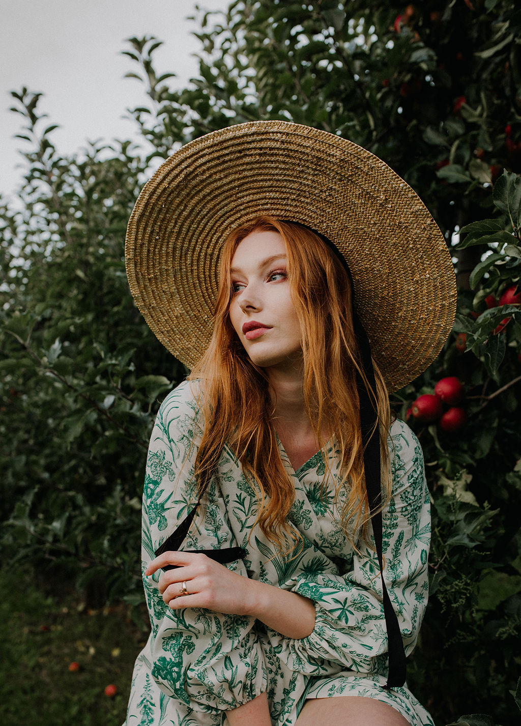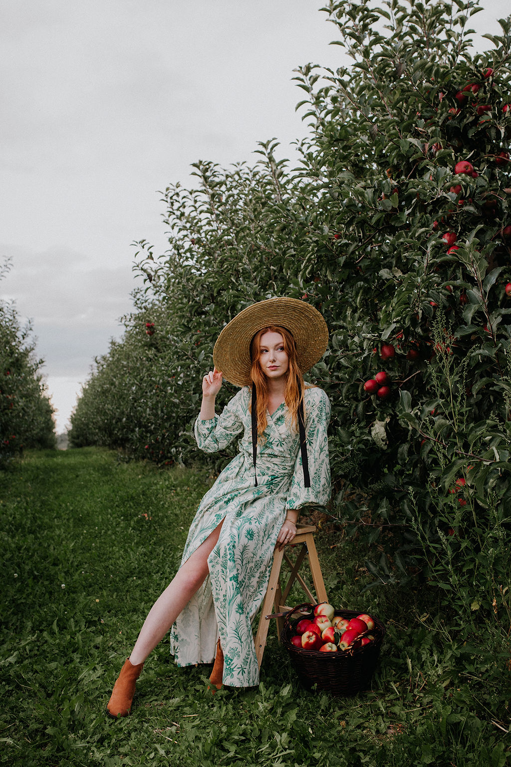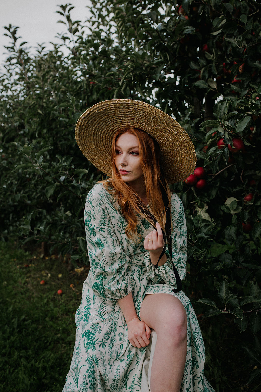 GAURI Plants Lady – to bawełniana sukienka maxi z cudownym printem roślinnym w kolorze butelkowej zieleni.
