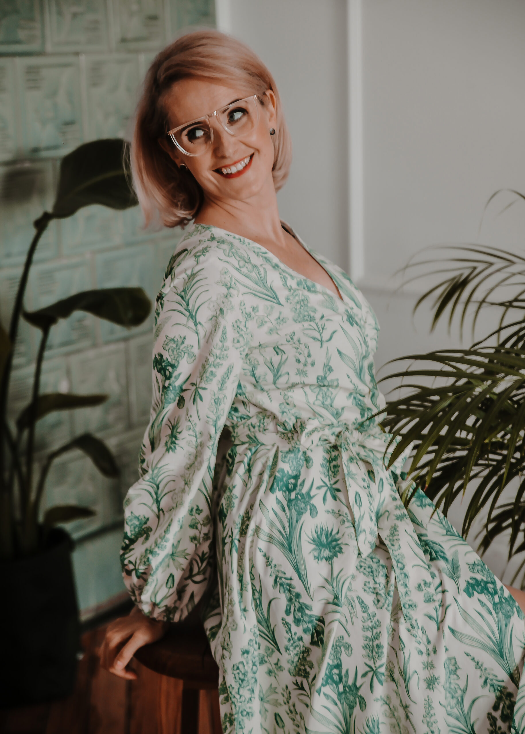 KOLOR: biały w roślinny, zielony wzór