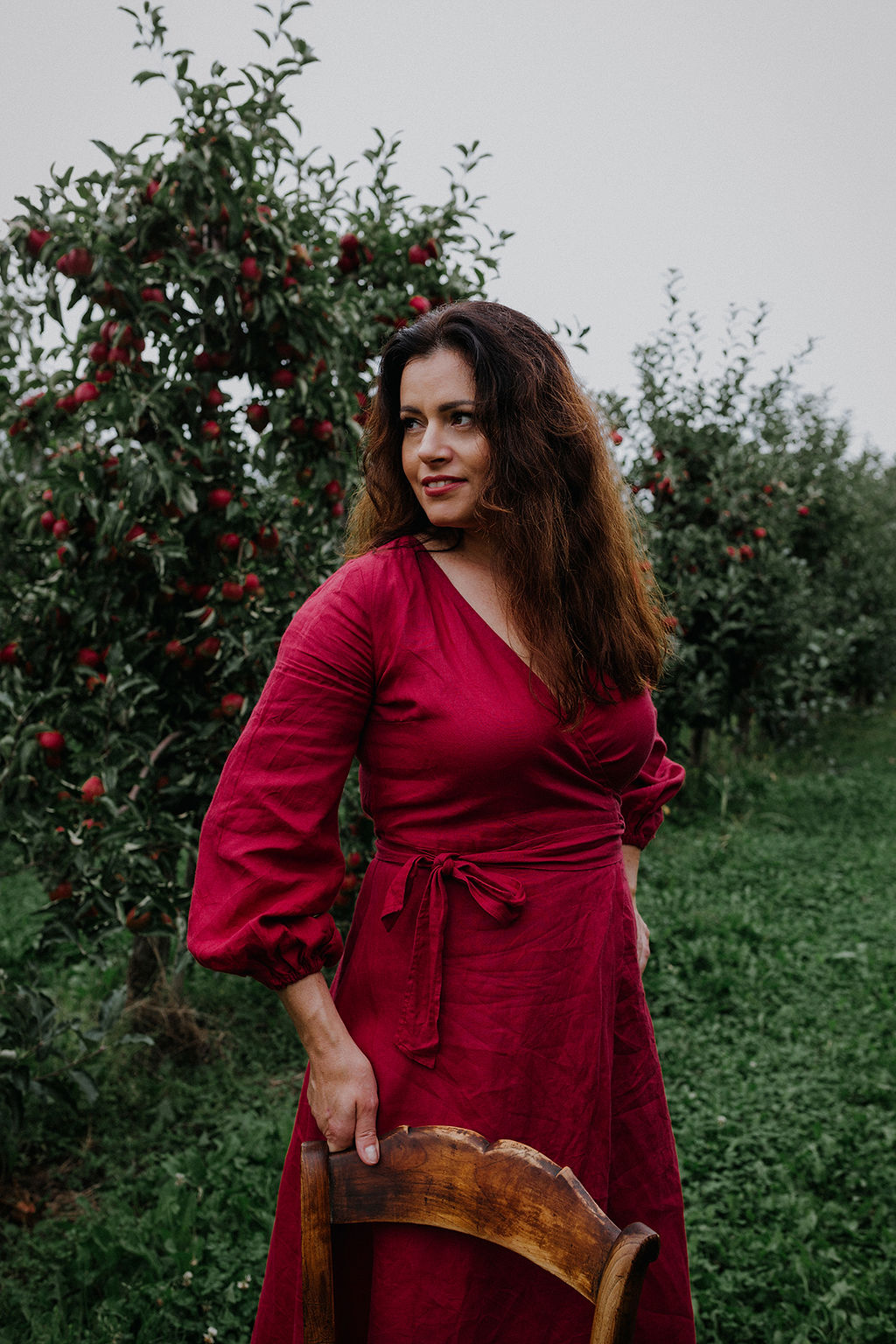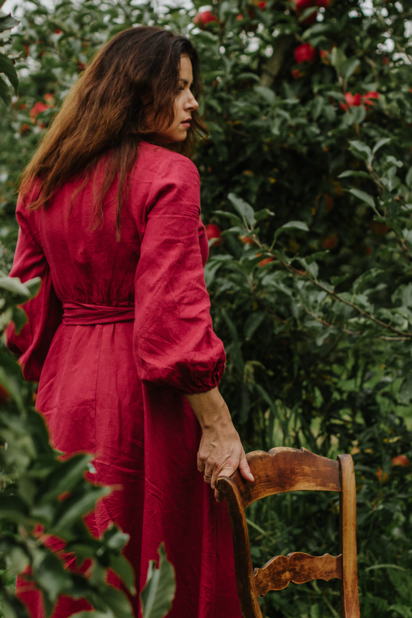 GAURI -Cherry Lady to lniana sukienka maxi w przepięknym kolorze głębokiej wiśni.