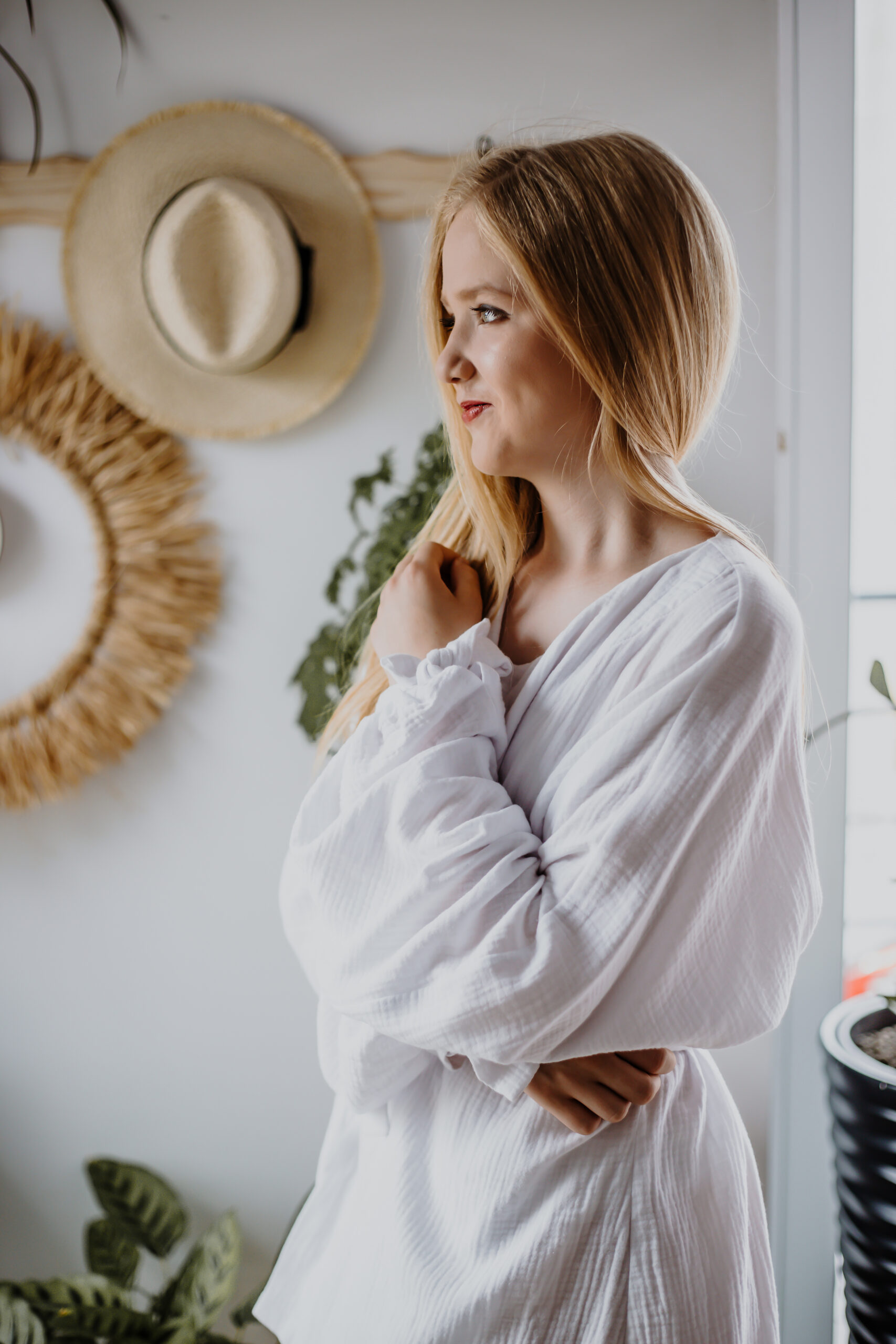 Niewiele więcej potrzeba w stylizacji z tą koszulą, żeby czuć się wyjątkowo. Sprawia to charakterystyczna struktura muślinu, która porusza się razem z Tobą i wygląda zawsze zjawiskowo. Rękawy zebrane są troczkami wiązanymi w kokardki. A dekolt to kwestia Twojej decyzji w danej chwili. Możesz układać tak, jak Ci pasuje – zawijać i odwijać. Zawsze wygodnie i kobieco.