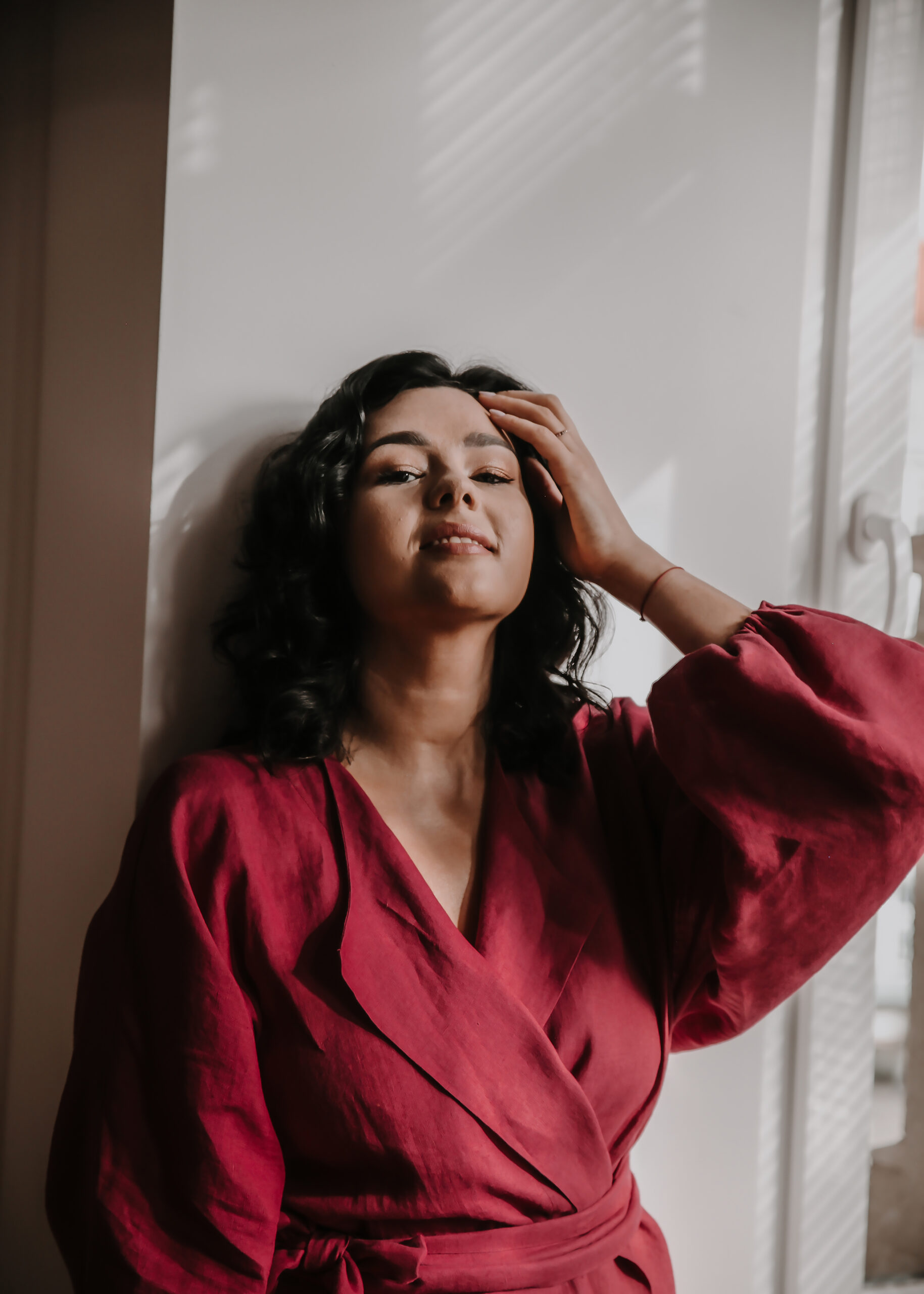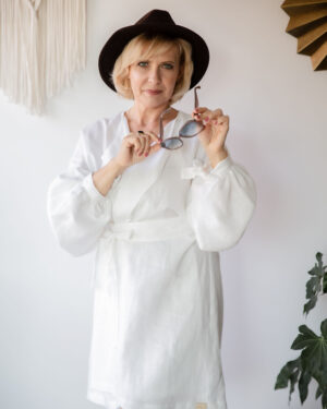 MATERIAŁ: 100% len o wyższej gramaturze, abyś mogła ją założyć również w chłodniejsze pory roku jak jesień czy zima.
