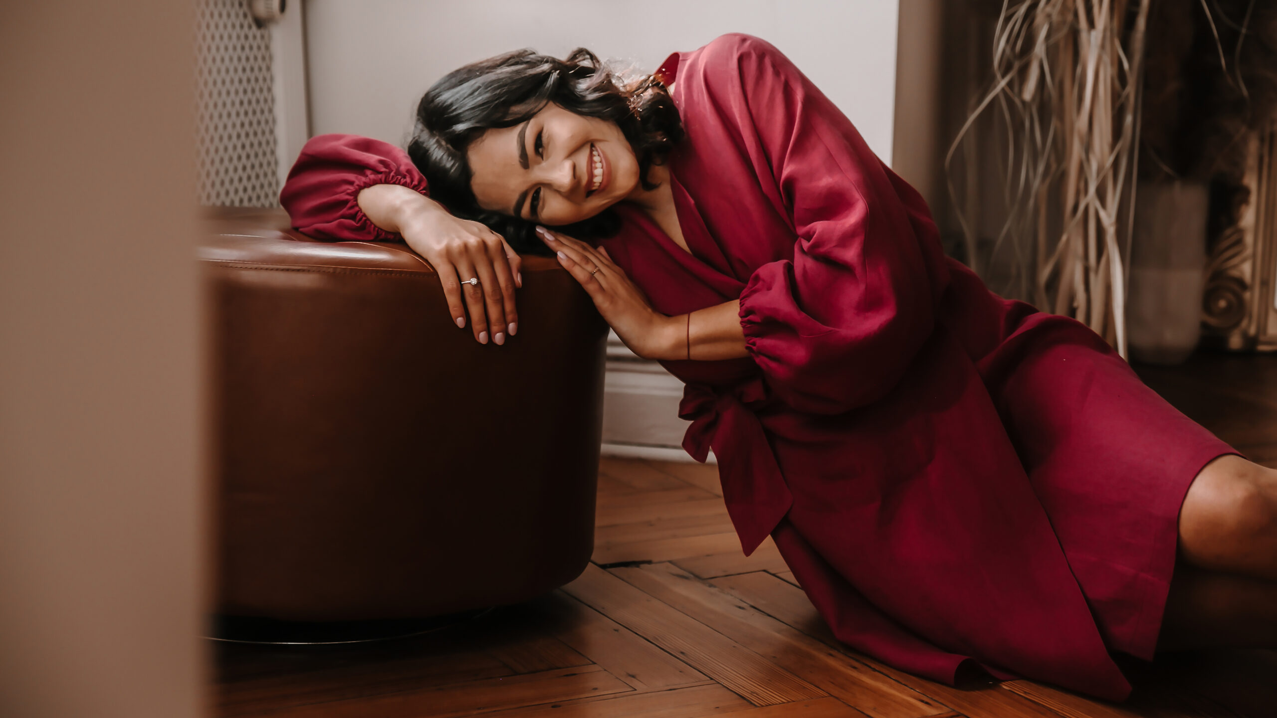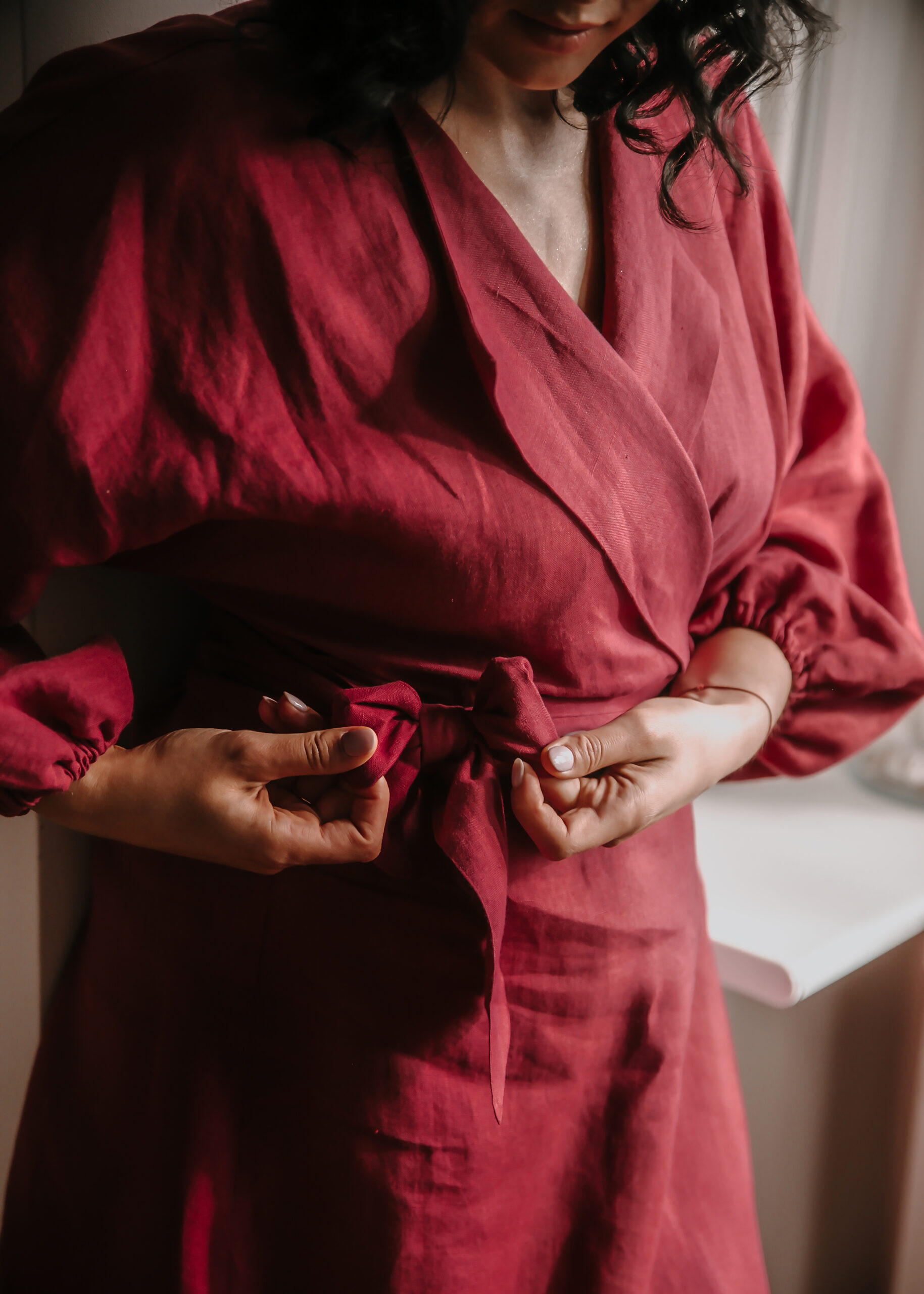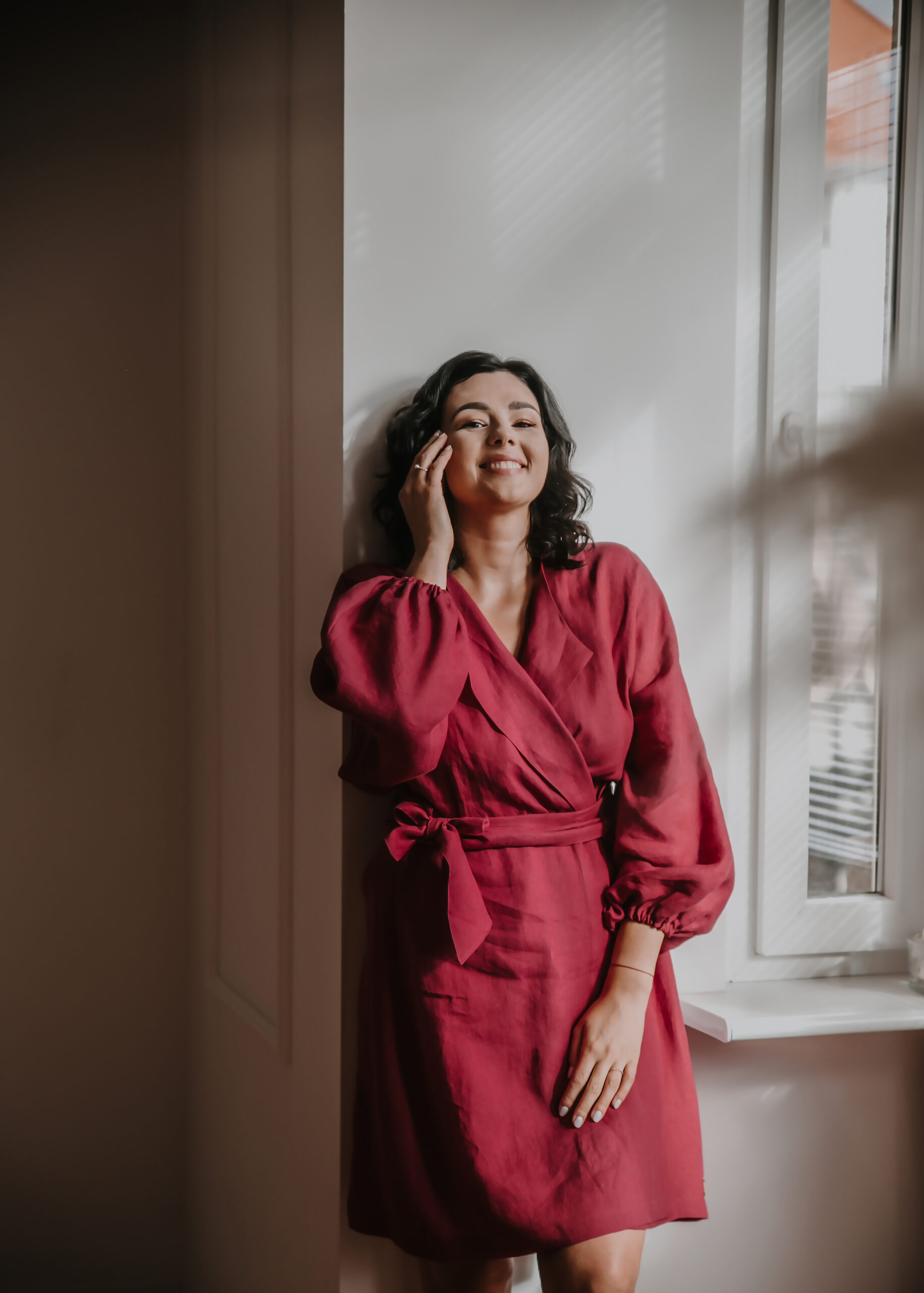 Lnianą sukienkę należy prać delikatnie w 30 stopniach lub ręcznie.