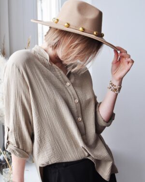 Niewątpliwym atutem stają się również rękawy zakończone gumką, dzięki której możesz regulować ich długość a z kolei dekolt to kwestia Twojej decyzji w danej chwili. Możesz układać tak, jak Ci pasuje – zawijać i odwijać. Zawsze wygodnie i kobieco.