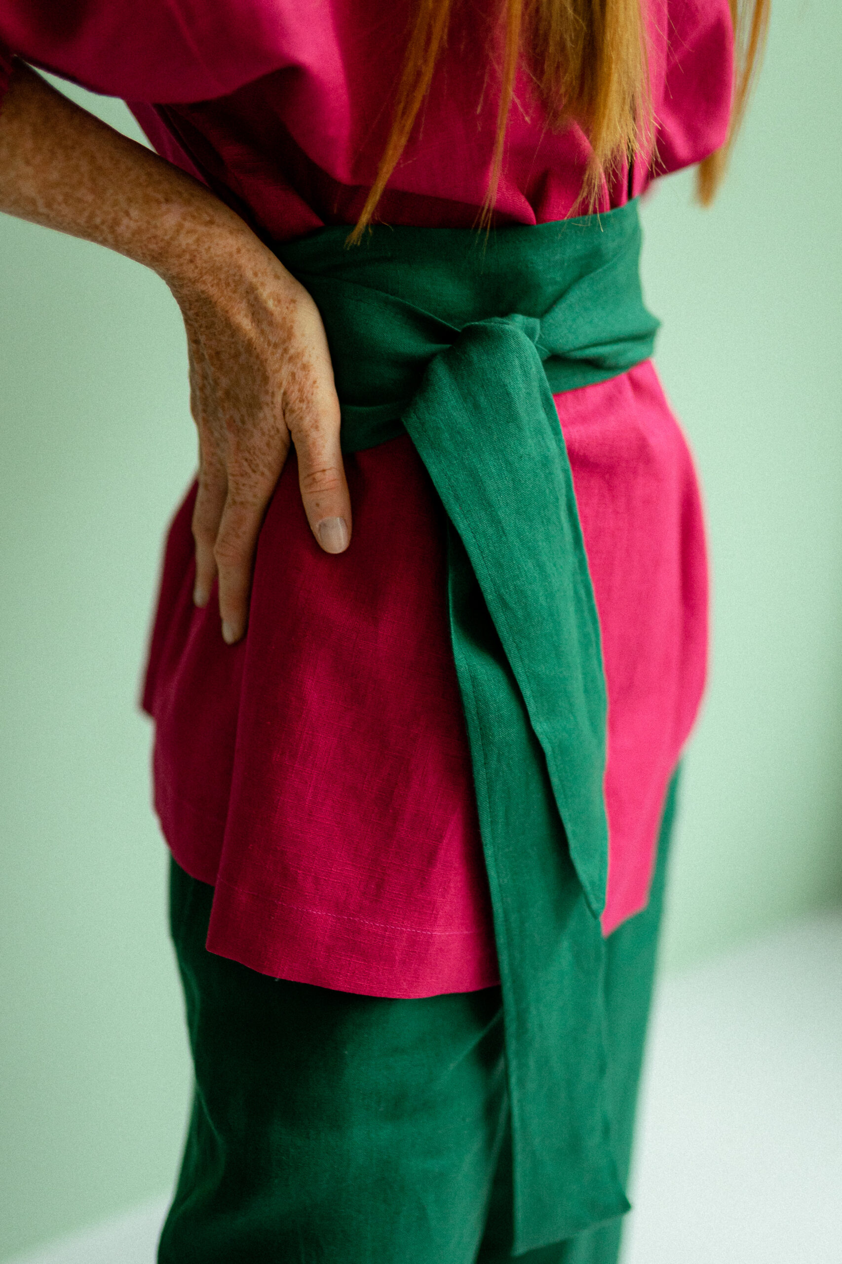 SANI w naszej ocenie to kultowe kimono, uszyte w 100% z lnu, najwyższej jakości dostępnego obecnie na rynku europejskim, bowiem len to naturalny materiał o doskonałych właściwościach termoregulacyjnych, dlatego świetnie sprawdza się zarówno latem jak i zimą. Jest przyjemny dla skóry i pozwala jej swobodnie oddychać.