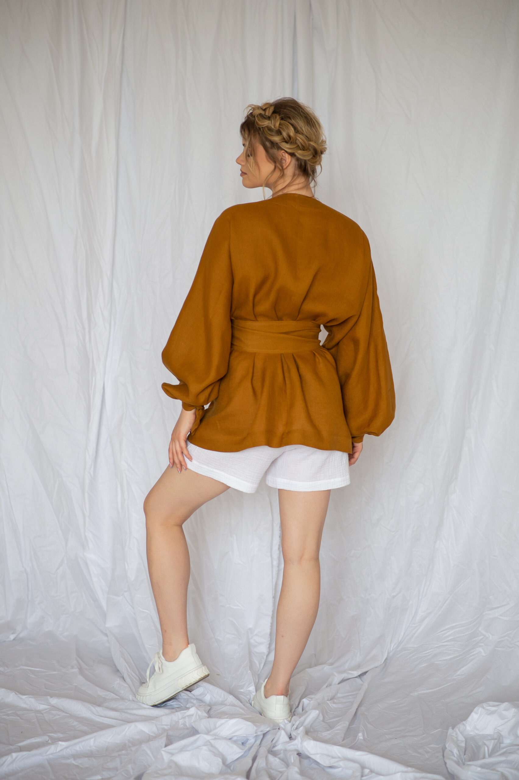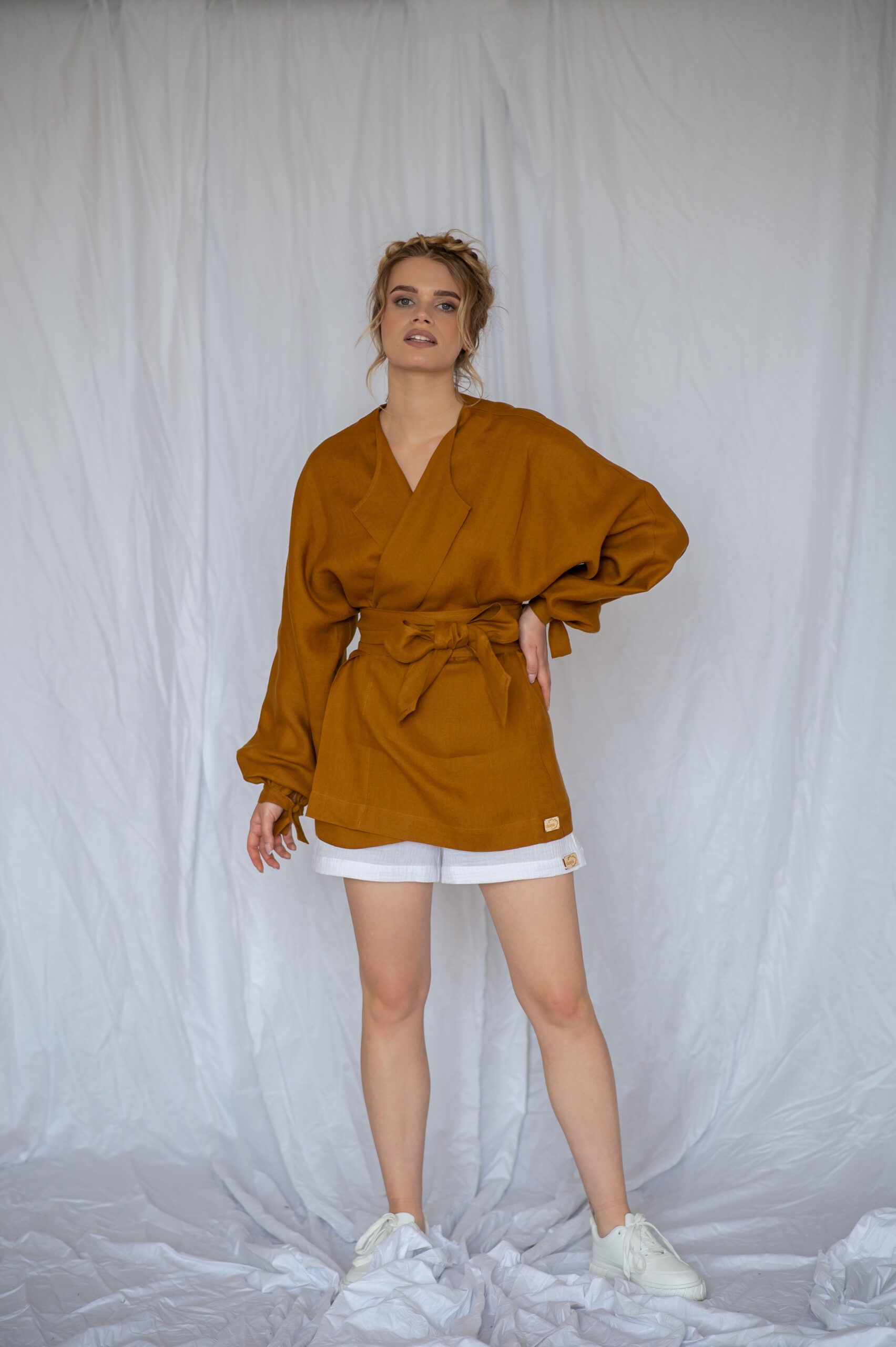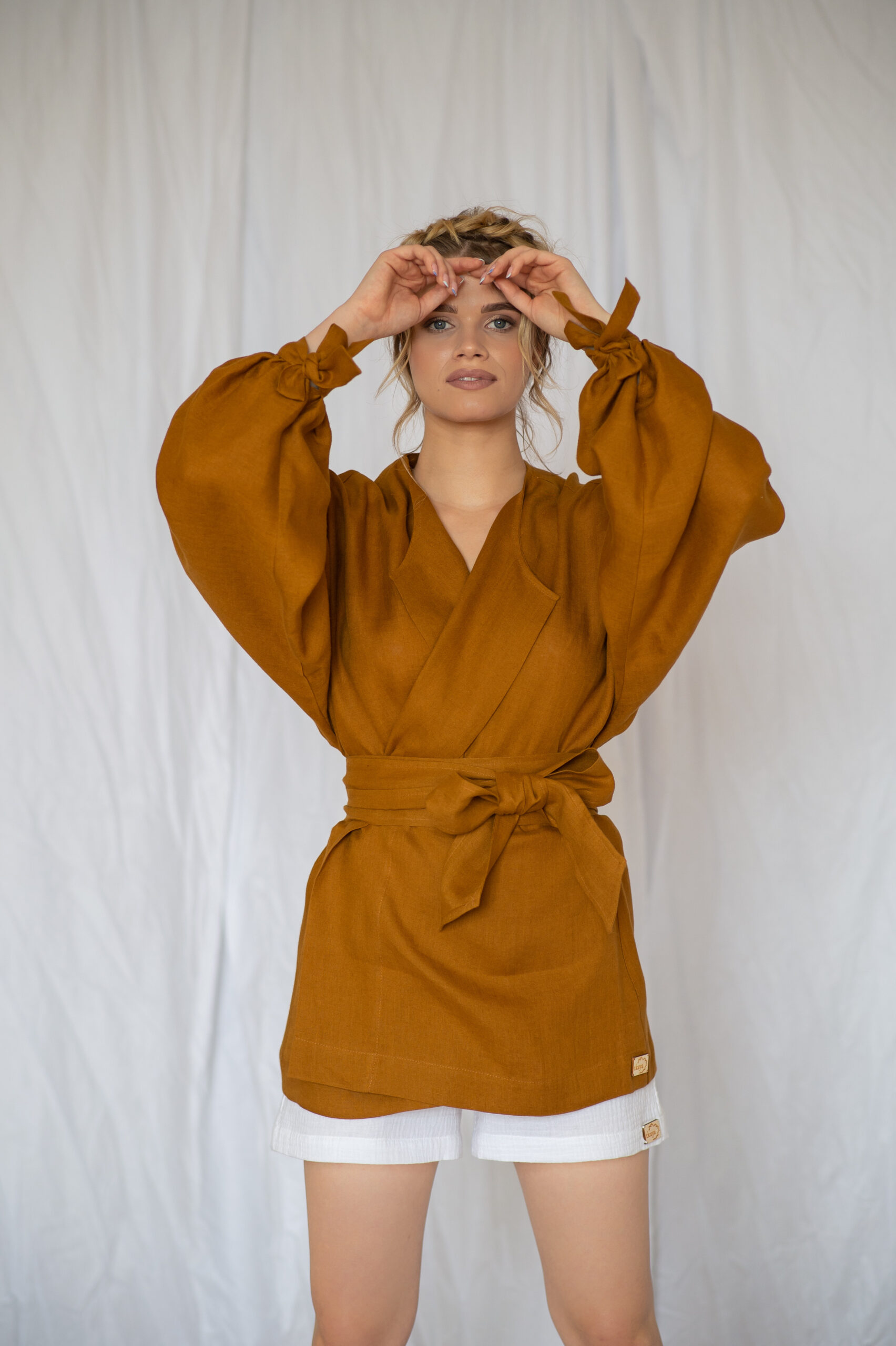 SATYA Lniana koszula kimonowa -Cinnamone