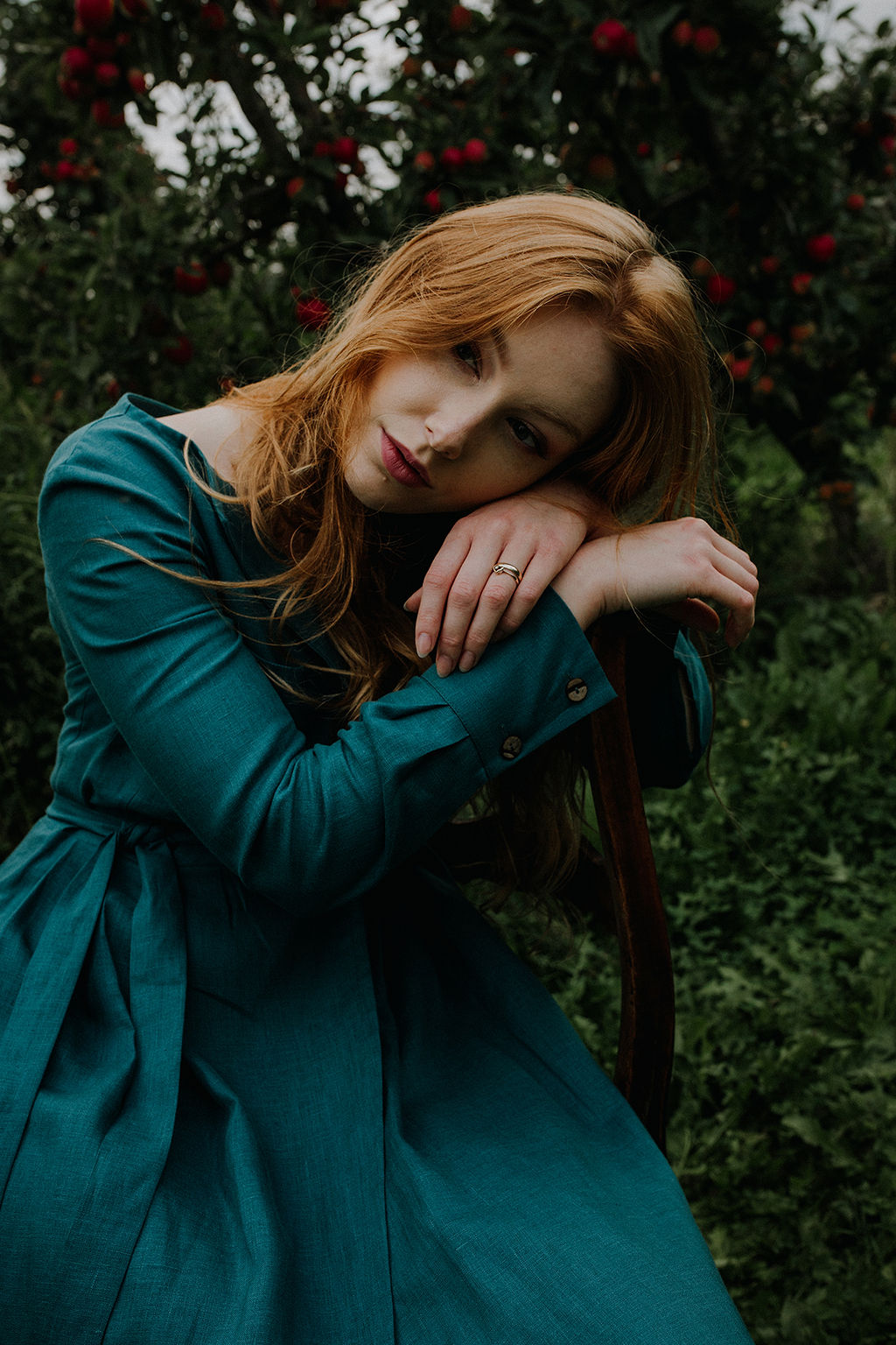 SELMA Lniana sukienka -Teal Lady S/M
