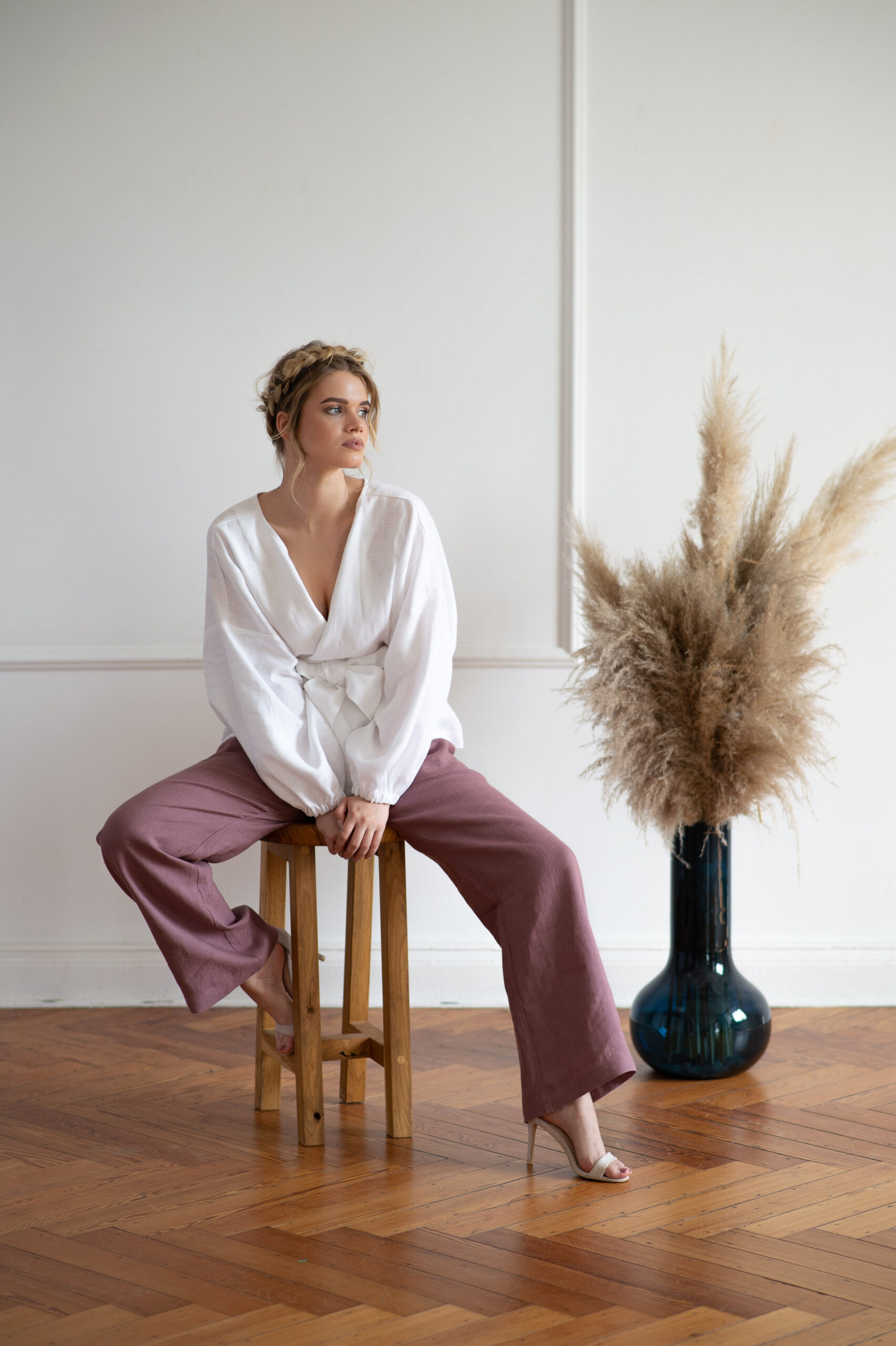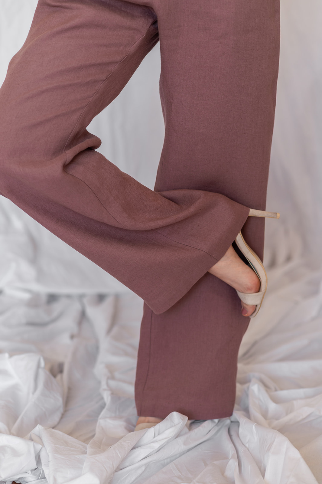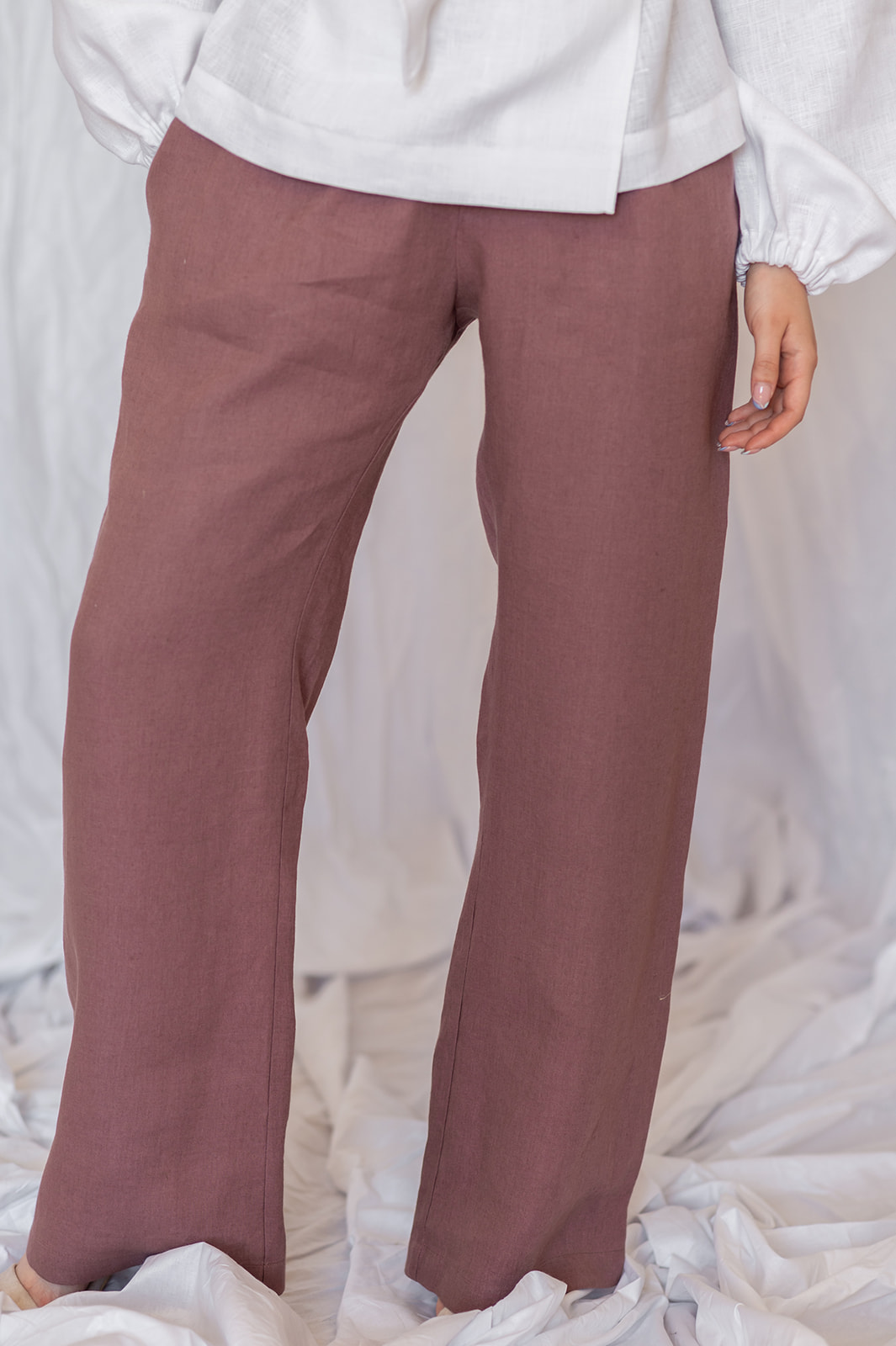 Długie spodnie lniane w kolorze w którym można zakochać się od pierwszego ujrzenia jak i ubrania:-).