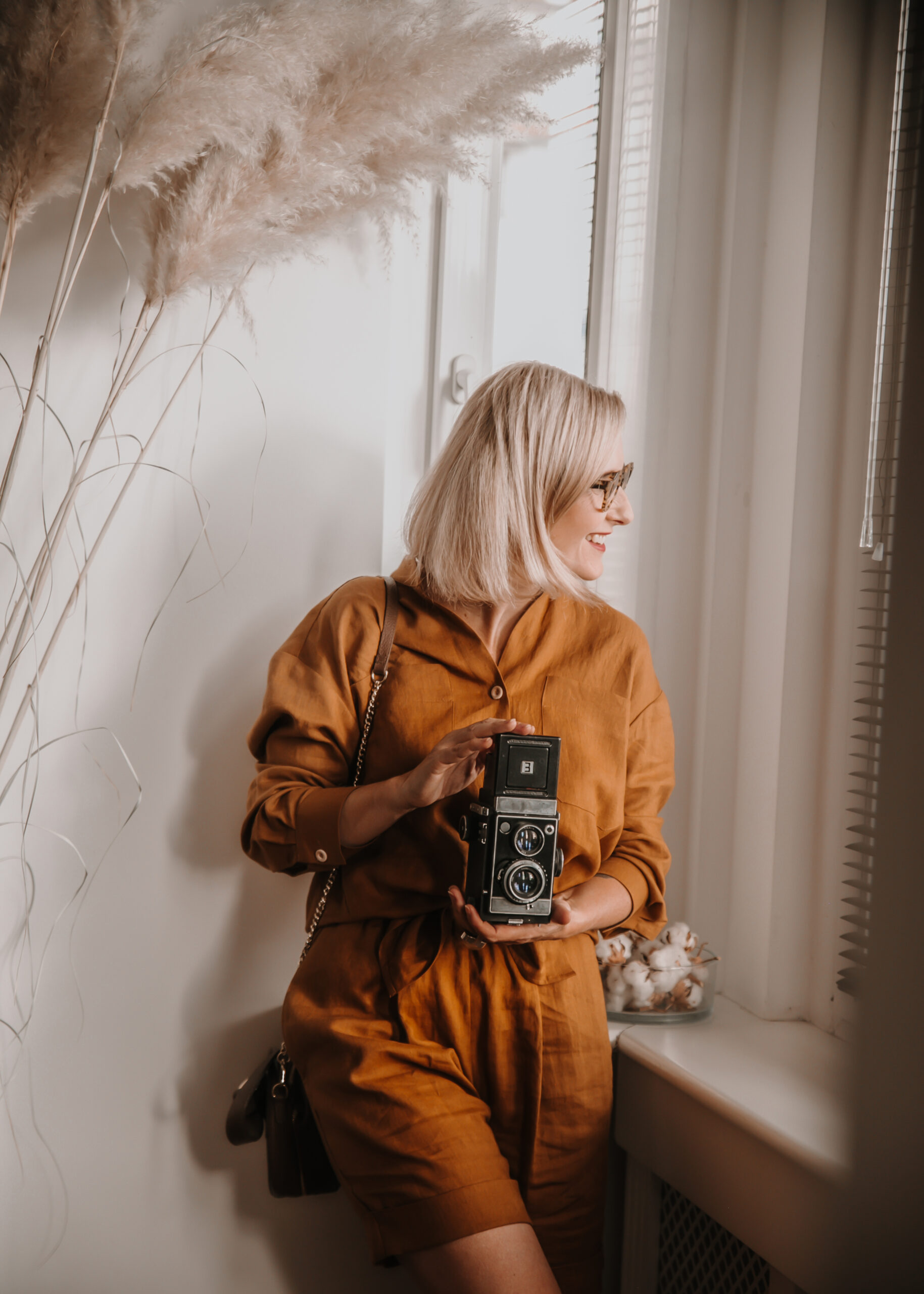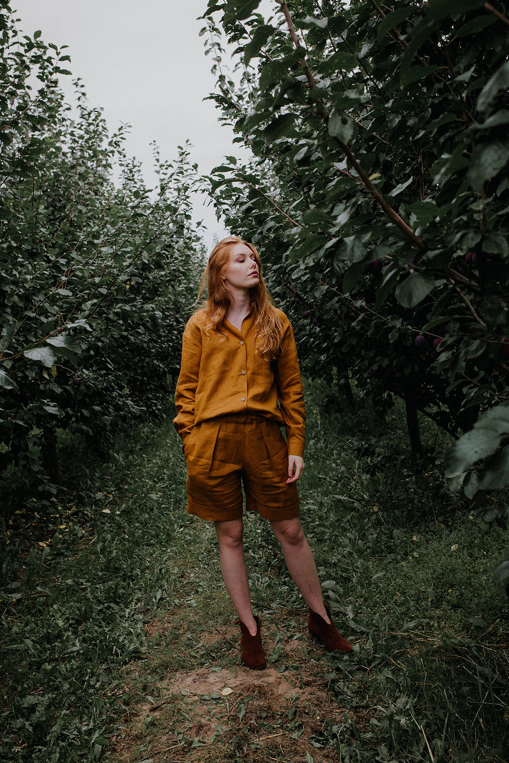 Koszula SHILA uszyta ze 100% lnu, dobranego gramaturą również na jesienno-zimową aurę i w kolorze w którym można zakochać się od pierwszego ujrzenia jak i ubrania:-).