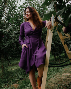 SAMALI maxi Wine Lady – Kopertowa suknia z muślinu- Pre-Order